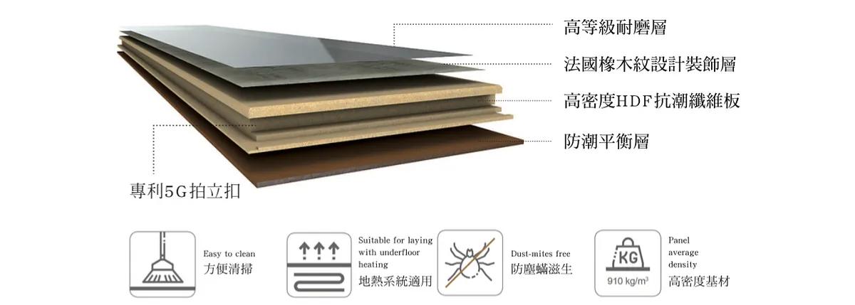 高密度基材 910 kg/m3,高規格防潮品質效果更佳。